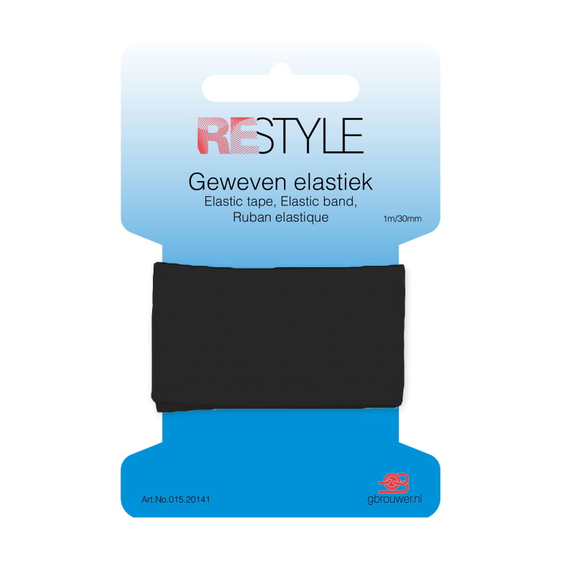 Restyle geweven elastiek is wasbaar tot en met 60° en is verkrijgbaar in een lengte van ca. 1 meter, opgerold op een kaart en in de kleuren wit en zwart. De breedtes variëren van 15 mm tot en met 30 mm .