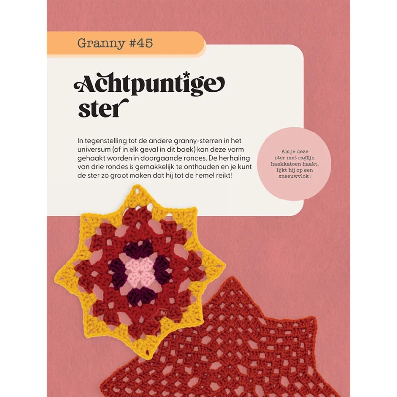 Het fijne is dat dit boek geschikt is voor zowel beginners als ervaren hakers. Elk patroon wordt duidelijk uitgelegd met geschreven instructies en een overzichtelijk haakschema. Daarnaast krijg je allerlei handige tips om formaten aan te passen, kleuren te kiezen en verschillende vormen mooi met elkaar te combineren. Zo kun je jouw eigen creaties maken: van kleine decoraties tot grote, opvallende dekens.
