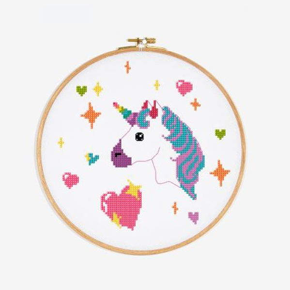 Met het gratis kruissteek borduurpatroon Unicorn van DMC heb jij er weer een leuke afbeelding voor de kinderen te borduren. Alleen nog het borduurzijde erbij en je kunt beginnen. Dit gratis patroon wordt ter beschikking gesteld door DMC. Geborduurd op aïda stof, afmeting 18 x 18 cm.