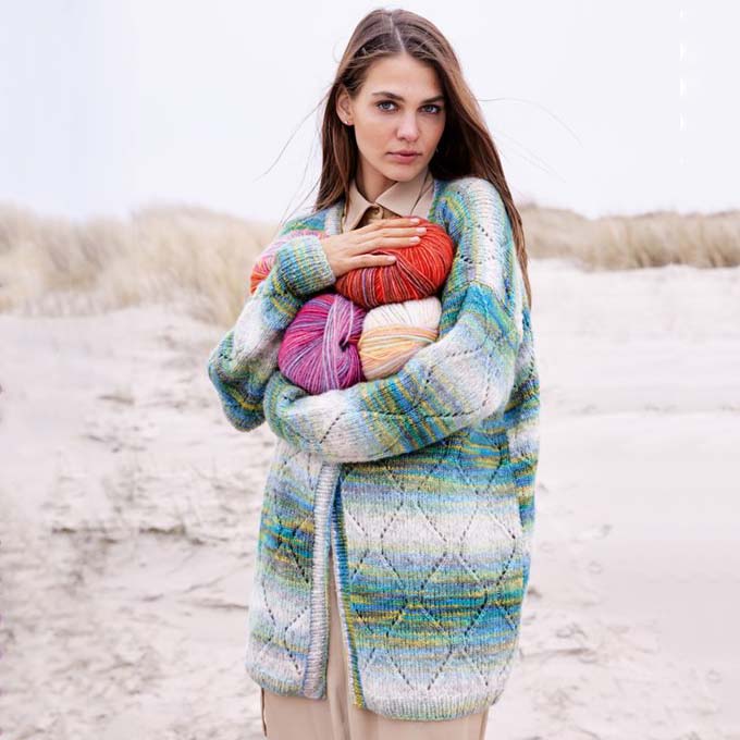 Zelf een half lang damesvest breien kan nu eenvoudig met het Lana Grossa Picasso breipakket. Het patroon ontvang je gratis via de mail. Je breit dit heerlijke, comfortabele damesvest met het zachte garen Lana Grossa Picasso. Een garen wat is samengesteld uit merino met alpaca wol, geschikt voor de gevoelige huid en door het mooie kleurverloop krijgt het vest een mooi patroon. Het vest valt lekker ruim en kun je overal mee combineren.