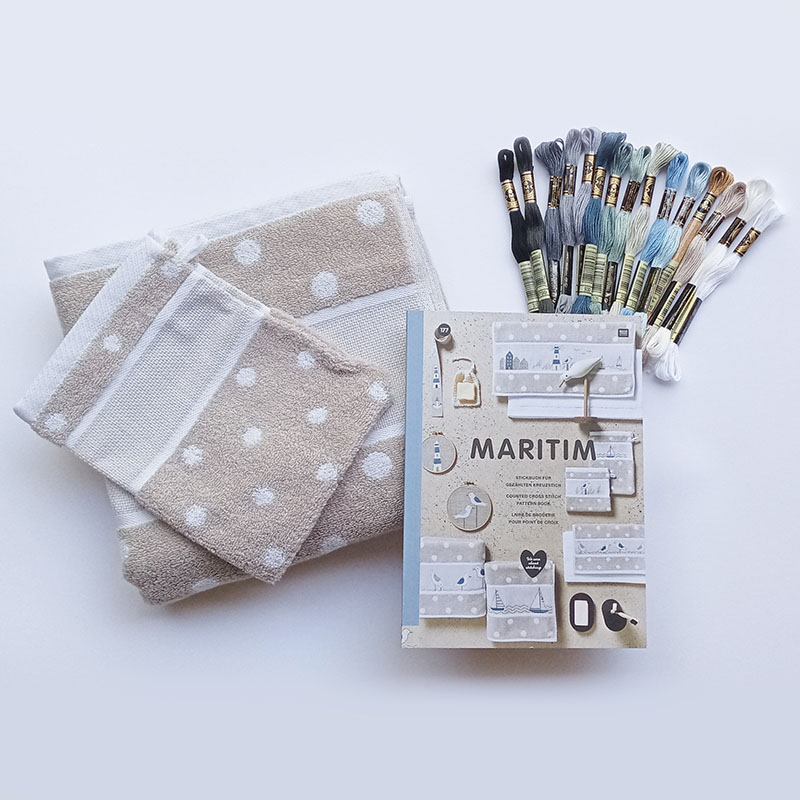 Zelf een handdoekset borduren met het borduurpakket Maritiem. Dit borduurpakket is speciaal voor jouw samengesteld, zodat je direct kunt beginnen met het borduren van een prachtige handdoek set. De handdoek en washand zijn van een mooie kwaliteit en hebben een speciale borduurrand. Je borduurt met verschillende kleuren DMC borduurgaren de leukste maritieme ontwerpen op de handdoek. Zo kun je zeedieren, bootjes, schelpen, meeuwen en vuurtorens borduren. Kies wat jij leuk vindt en kies jouw kleurencombinatie.