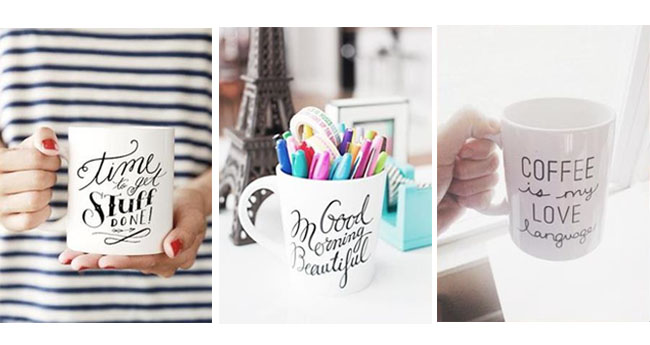 Altijd leuk om het handletteren op een mok uit te proberen. Er zijn genoeg leuke quotes te vinden die voor jou, je vriend, vriendin of een van de familieleden toepasselijk zijn.
