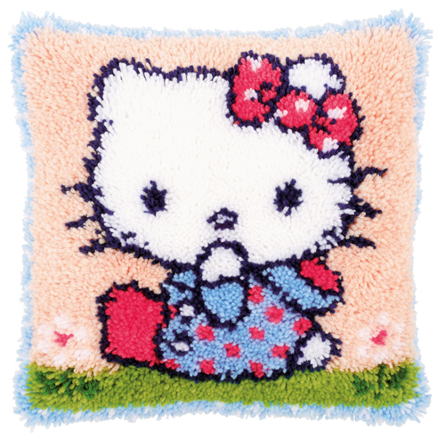 Hello Kitty op het gras - Knoopkussen Vervaco
