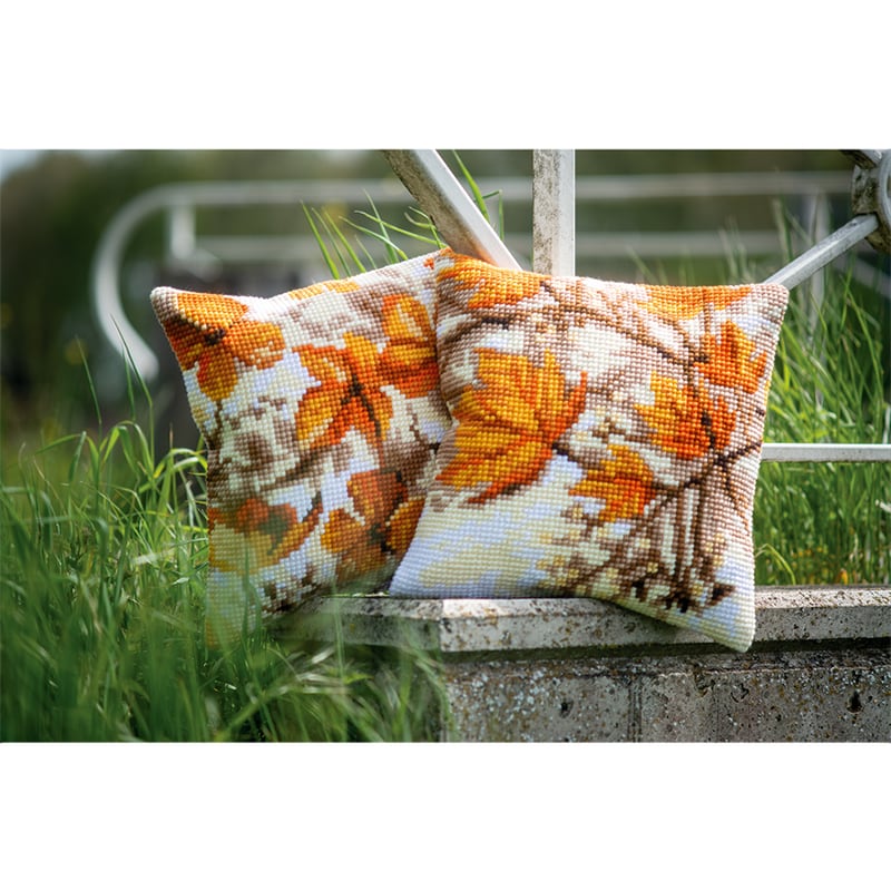 Herfstbladeren borduurkussen borduurkussen - Vervaco borduurpakket
