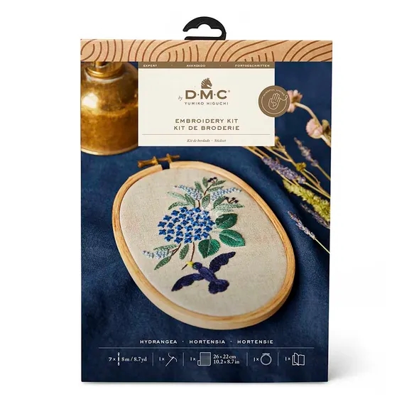 Laat je creativiteit tot leven komen met het DMC borduurpakket Hortensia, onderdeel van de exclusieve Designer Collectie. Deze serie brengt unieke ontwerpen van internationale borduurkunstenaars samen en laat u kennis maken met diverse borduurtechnieken. Het ontwerp Hortensia is afkomstig van de Japanse ontwerpster Yumiko Higuchi, bekend om haar minimalistische stijl en oog voor detail. Het subtiele bloemen en vogelmotief straalt rust en elegantie uit, en vormt een stijlvolle decoratie voor elk interieur.
