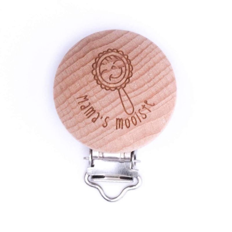 - 2 houten speenclips met de tekst "Mama's mooiste"