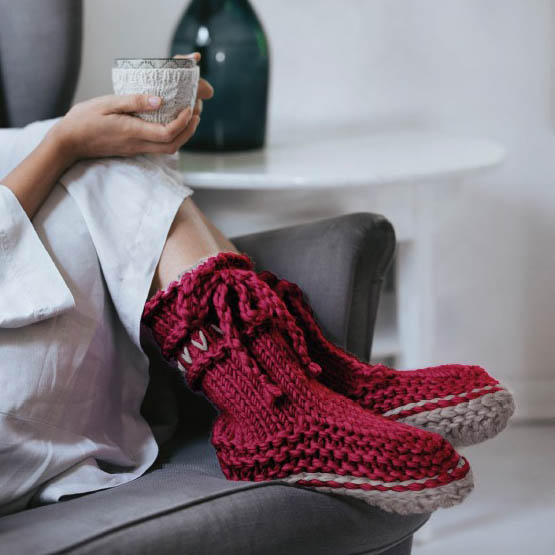 Heb jij snel last van koude voeten? Brei dan deze comfortabele Hygge sloffen en geniet er iedere dag van dat ze je voeten lekker warm houden. Om te voorkomen dat de sloffen glijden kun je op de zool wat Sock Stop aanbrengen.