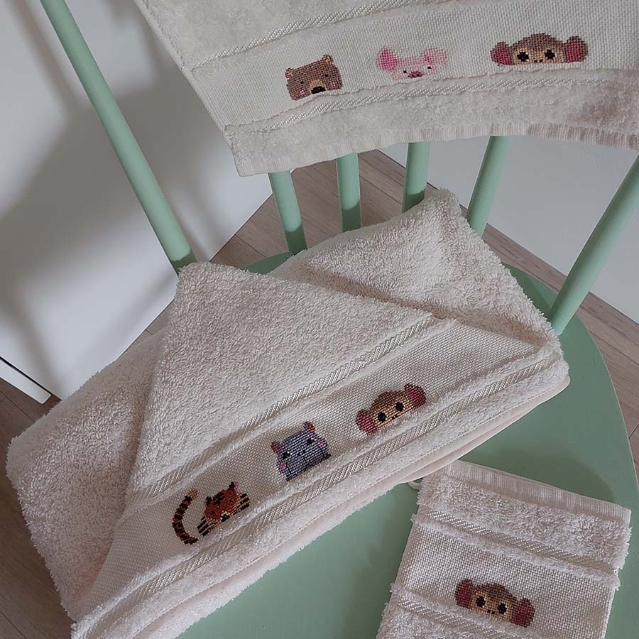 Deze vrolijke jungle baby set bestaat uit een royale baby badcape, washand en slabbetje. Allemaal in dezelfde kleur en geborduurd met lieve jungle dieren. Bij deze set ontvang je ook DMC borduurgaren om de afbeelding zoals op de foto te kunnen borduren én natuurlijke het Rico borduurboekje. In het borduurboekje staan tal van telpatronen die je op je eigen manier kunt combineren. Zo kun je ze ook gebruiken om op een losse borduurrand te borduren, die je dan bijvoorbeeld op een lakentje kunt naaien.