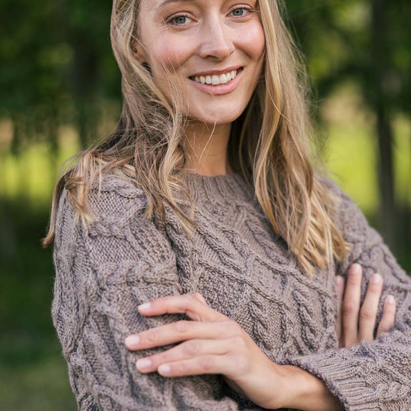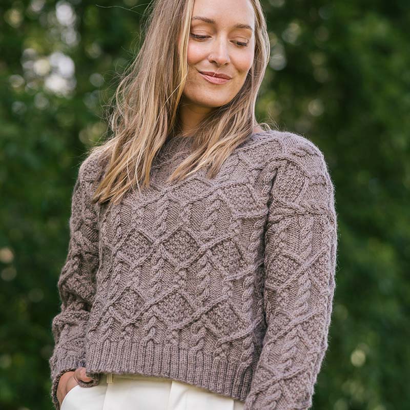 Kabeltrui Vietto is het perfecte voorbeeld van hoe een trui met kabelpatroon klassiek en trendy in één kan zijn. Door het afwisselende kabelpatroon wordt het niet te massief, komen de structuren goed tot zijn recht en door het wat kortere model wordt het een damestrui die je zowel in je vrijetijd als tijdens een feestje aan kunt. De trui brei je in het rond, van onder naar boven.