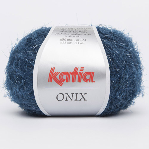 Katia Onix is een grappig glanzend harig garen met een glans er over. Breisels met dit Onix garen straalt elegantie uit. Het Onix garen wordt geregelmatig getoond op de catwalk en in mode bladen.