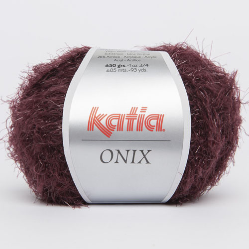 Katia Onix is een grappig glanzend harig garen met een glans er over. Breisels met dit Onix garen straalt elegantie uit. Het Onix garen wordt geregelmatig getoond op de catwalk en in mode bladen.