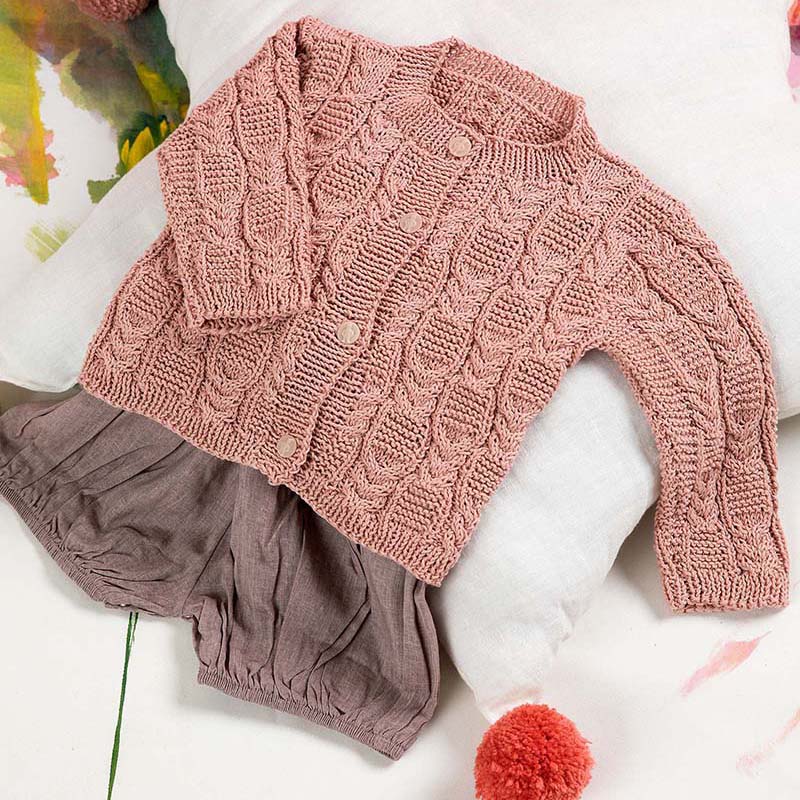 Inhoud breipakket katoenen babyvestjes met kabels: