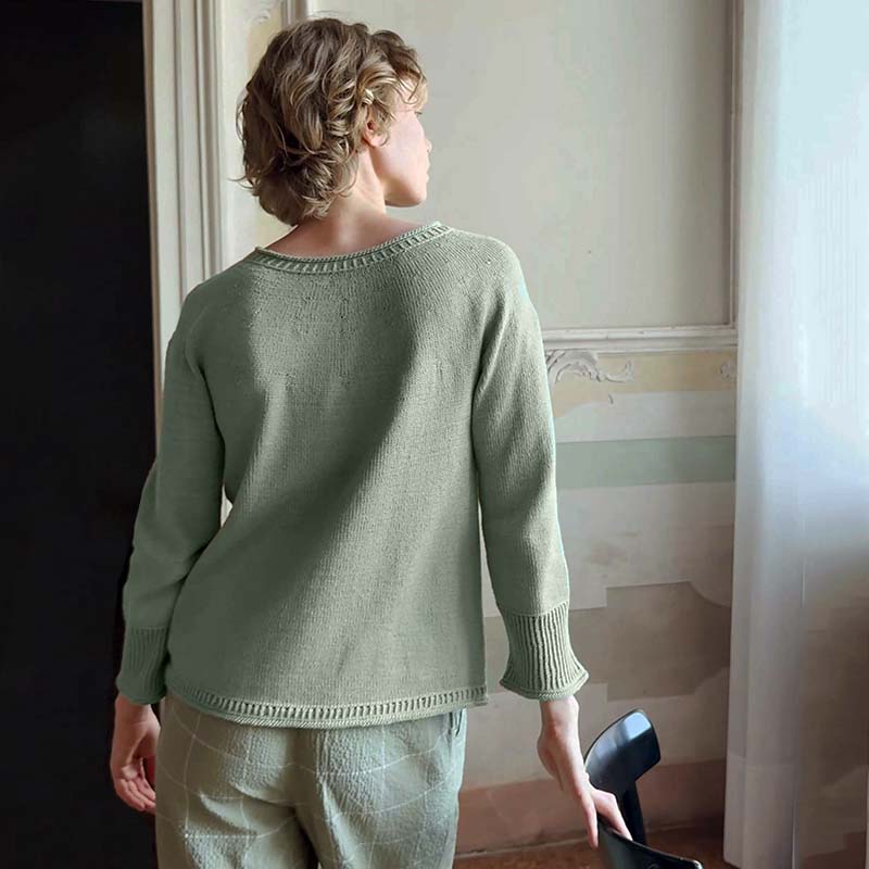 Brei deze leuke katoenen damestrui met het biologische katoen, Lang Yarns Baby Cotton. Het is een eenvoudig model met een leuk accent in de boorden. Omdat je de trui to-down breit, kun je de lengte makkelijk aanpassen. Het is een trui die je bijna het hele jaar door kunt dragen en makkelijk combineert met een broek of rok.