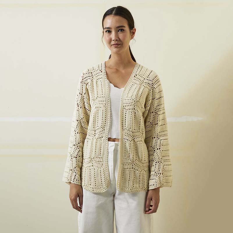 Omdat het damesvest met 100% katoen garen wordt gehaakt is het perfect voor zowel de zomer als het voor- en najaar. De zachte katoen zorgt voor een comfortabel vest wat je met verschillende items kunt combineren.