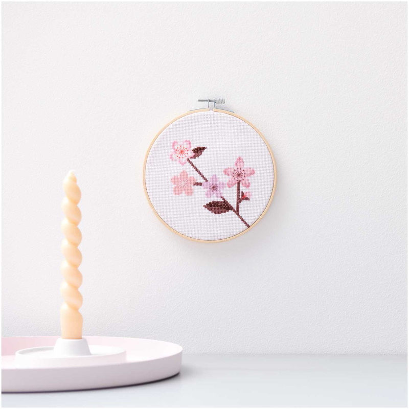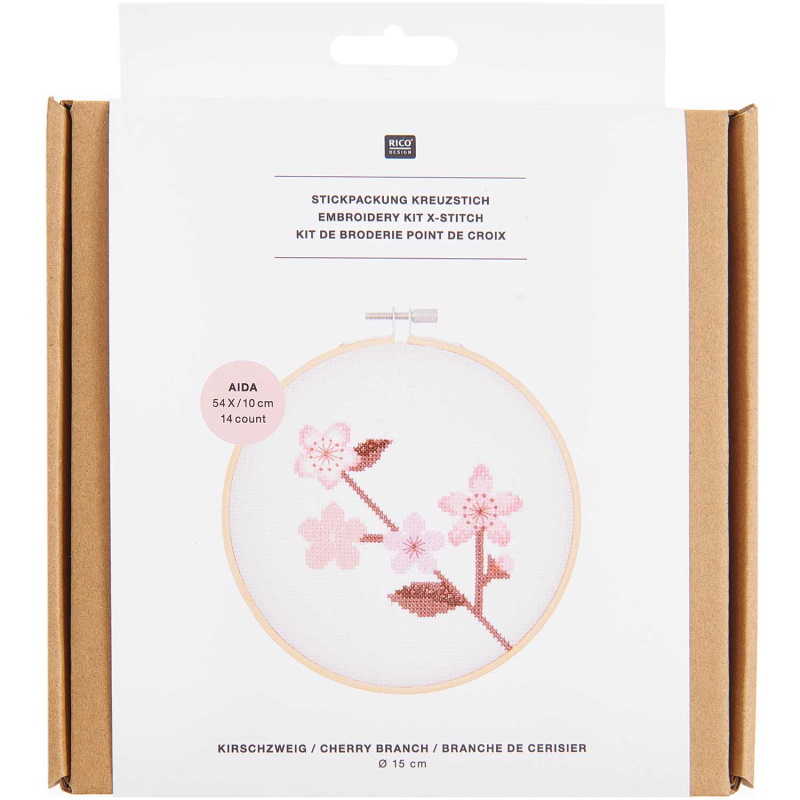 Kersenbloesem tak borduurpakket met borduurring - Rico Design telpatroon