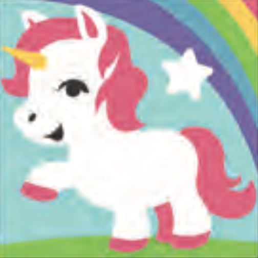 Kinderen leren met het kinderborduurpakket een Eenhoorn borduren in halve steek. De Eenhoorn is voorbedrukt op grof stramien dus gemakkelijk om te volgen. Ideaal om mee te beginnen en al snel een makkelijk maar heel leuk borduurwerkje te hebben! Doe er een mooi lijstje omheen en hang hem trots op in je kamer of maak er een klein kussentje of tasje van.