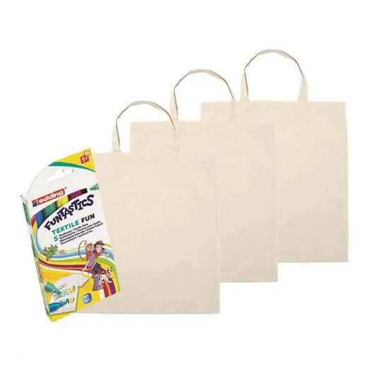 Je kunt een set met 3 tasjes en de textielstiften samen kopen. Heb je meer tasjes nodig dan kun je ze er los bij bestellen. Klik op de foto's om het beter te bekijken.