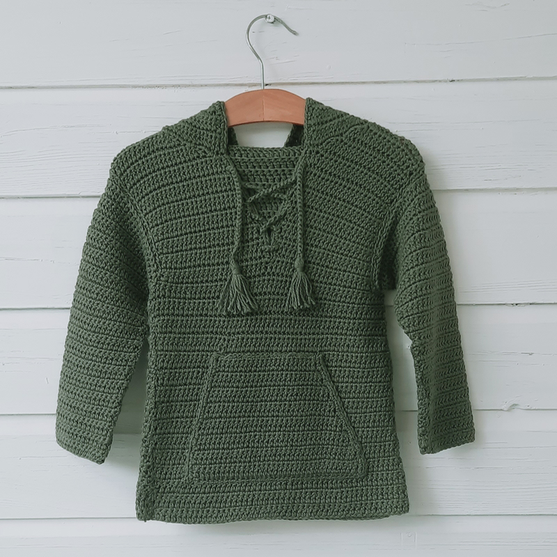 Collega Willeke heeft deze hoodie ontworpen en gehaakt. Het patroon is geschreven voor maat 86/92 en is geschikt voor zowel jongens als meisjes.