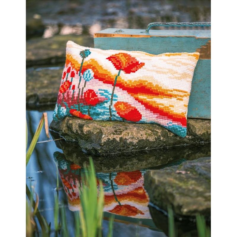 Klaprozen landschap borduurkussen - Vervaco borduurpakket