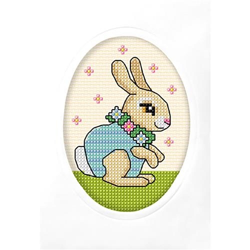 Konijntje wenskaart borduren - Orchidea borduurpakket met telpatroon