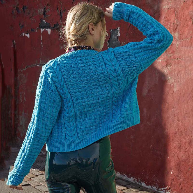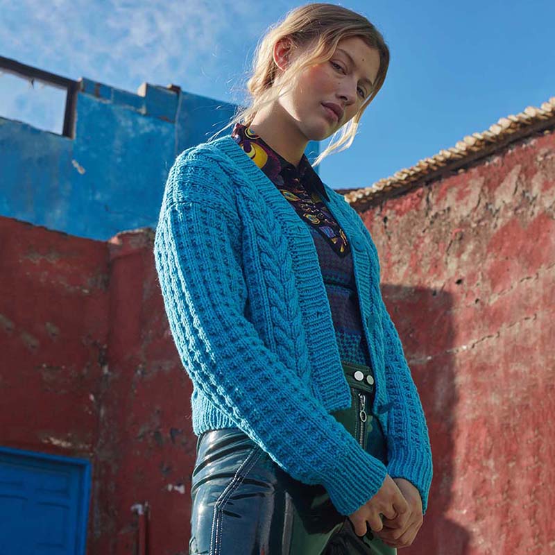 Dit korte damesvest met kabelmotief en reliëf blokjes is een mooi model wat je het hele jaar door draagt. De samenstelling van het garen (de combinatie van alpaca met katoen) zorgt voor comfort tijdens het voor- en najaar. Het ketting garen is los getwijnd waardoor ieder model wat je hiermee maakt, lekker soepel voelt.