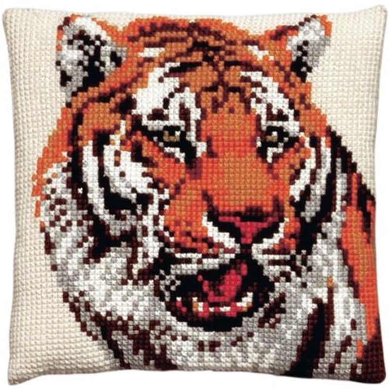 Een kussen met Tijger borduren doe je met het Pako borduurpakket. Het patroon is voorbedrukt op stramien. Doordat dit complete pakket het benodigde garen en een borduurnaald mee levert, kun je direct beginnen. Het enige wat je nog nodig hebt is een binnenkussen van 40x40 cm en een kussenrug. Die zijn beschikbaar in verschillende kleuren zodat je jouw kussen helemaal op jouw interieur kunt afstemmen.