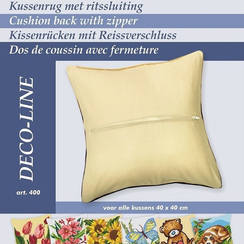 De kussenrug is gemaakt van dunne, soepele katoenen stof in de kleur ecru. Het is geschikt voor alle kruissteekkussens en smyrna/knoopkussens. De kussenrug met ritssluiting is geschikt voor kussens van 40 x 40 cm.