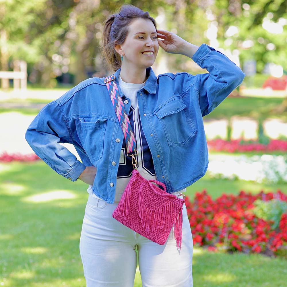 De schoudertas Novi is een functioneel 'go-to' tasje waar alles wat je écht nodig hebt in past. De vormgeving is strak en compact en de franjes zorgen voor stijl en uitstraling. In dit lichte tasje kun je met gemak je telefoon, portemonnee, wat make-up en je sleutels kwijt. De stevige schouderband met vrolijk design draagt comfortabel en zorgt ervoor dat je tasje Novi op iedere gewenste lengte kunt maken.