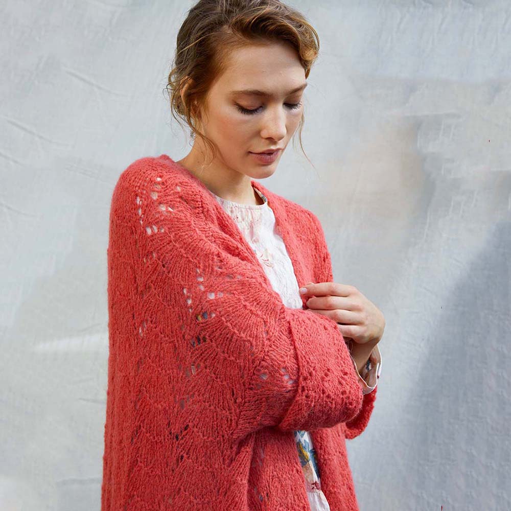 Lang damesvest met ajourpatroon breien - Alpaca Superlight breipakket