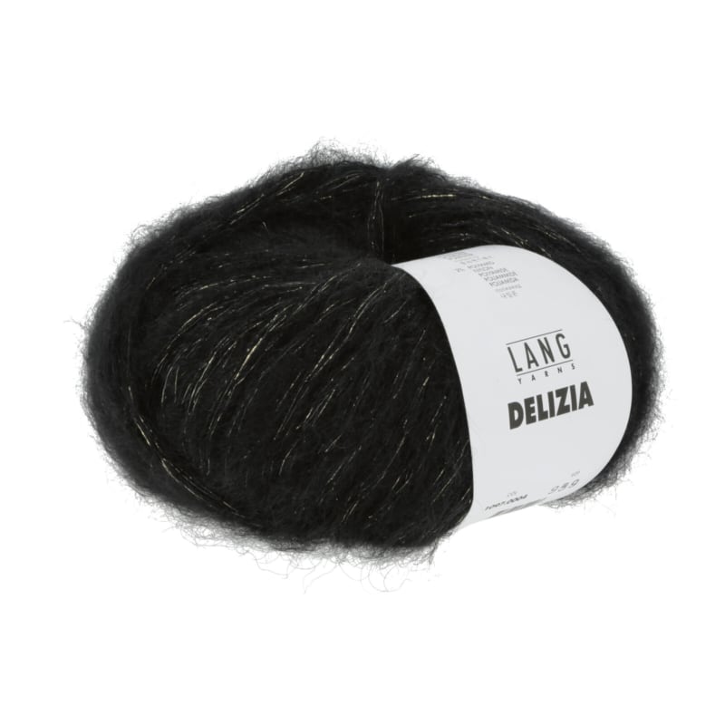 Lang Yarns Deliza is een prachtig sprankelend draadje! Het garen is een mengeling van meerdere superkid mohair draadjes met zijde en daar zijn ook nog een aantal metallic draadjes aan toegevoegd voor een prachtig luxe uitstraling. Samen wordt de Deliza een dikke maar heel erg luchtige draad die je breidt op naalden 9-10.