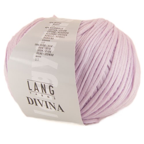 Lang Yarns Divina is een gemengd garen dat bestaat uit modal, katoen en zijde. Het natuurlijke garen is volumineus, super zacht en huidvriendelijk. Gebreid of gehaakt geeft de Divina van Lang Yarns een zomerse look. Divina is dan ook zeer geschikt om zachte, volumineuze en lichte zomer truien of vesten te breien. Een luchtige sjaal of omslagdoek haken kan ook prima. Lang Yarns Divina is verkrijgbaar in mooie pastels en zachte moderne kleuren. Inspiractie en modellen vind je in de Lang Yarns magazines FAM 267 Collection en FAM 263 Collection.