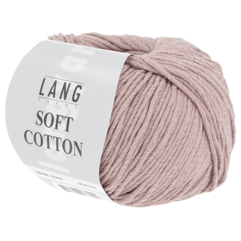 Lang Yarns Soft Cotton is een 100% katoen garen, geschikt voor de gevoelige huid en fijn voor ieder seizoen. Het is ademend en vochtabsorberend, dus het draagt heerlijk in de zomer, maar ook fijn in de winter omdat het zacht en warm aanvoelt. Soft Cotton van Lang Yarns is een dubbel getwijnde draad van 100% katoen en daardoor slijtvast en sterk. Soft Cotton geeft een heel regelmatig steekpatroon voor zowel breien als haken.
