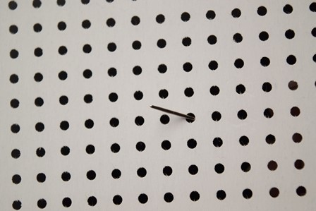Steek de naald aan de achterkant door het boorduurwerk. Trek de naald en draad door het gaatje naar voren. Steek de naald in het gaatje schuin boven het eerste gaatje (zoals je het eerste deel van het kruissteek), en steek gelijk via de achterkant door naar het gaatje daar recht onder. Trek de naald en draad door naar voren en je hebt een half kruisje.
