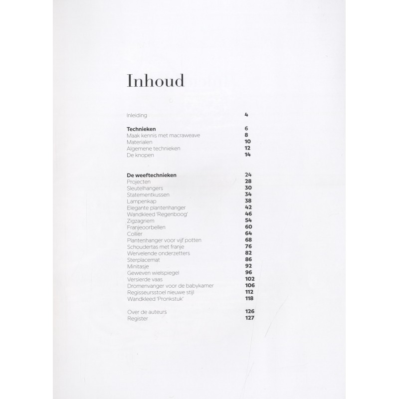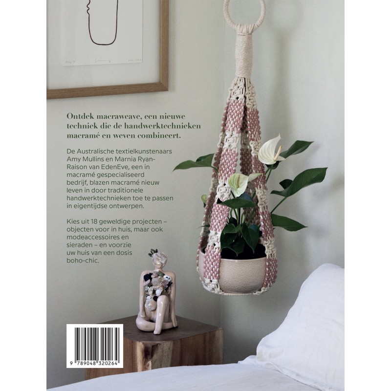 In Macraweave leer je met 18 patronen macramé en weven te combineren. Doormiddel van duidelijke illustraties en uitleg van technieken heb jij het macramé en weven zo onder de knie. Begin met een klein project zoals een placemat, sleutelhangers of sieraden. Leer verder met een lampenkap, schoudertas of een dromenvanger. En eindig groots met een wandhanger of zelfs een stoel! Ontdek de leuke patronen van Macraweave en kies waar jij als eerste mee begint om je interieur op te vrolijken.