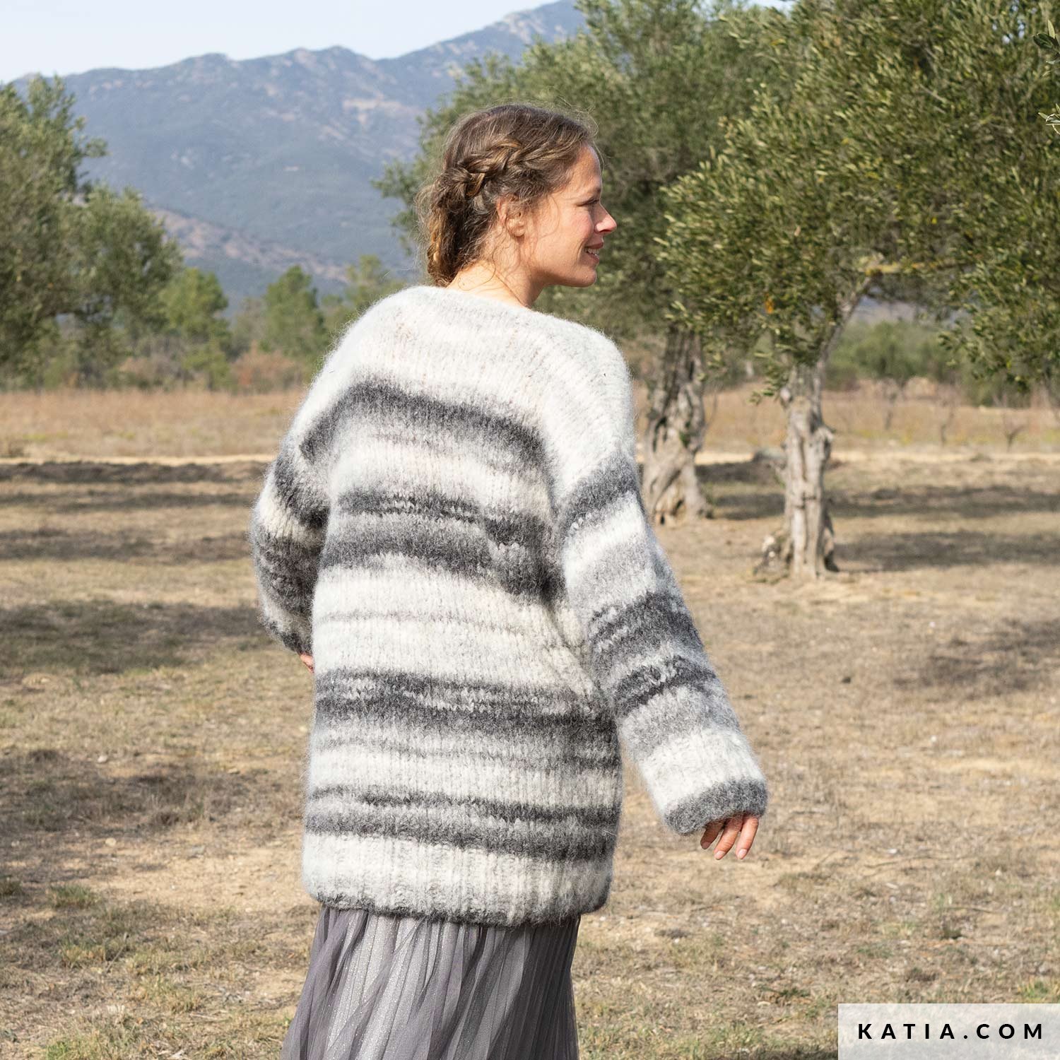 Deze maxi damestrui breien is een mooi project voor beginners en maak je met het Katia Breipakket. Natuurlijk is het voor de meer ervaren breister ook leuk om dit project tussendoor te maken. Door het kleurverloop in het garen ontstaat er vanzelf een streeppatroon. De trui heeft een nonchalante uitstaling, is beschikbaar vanaf maat 38 tot maat 48 en geschikt voor de gevoelige huid.