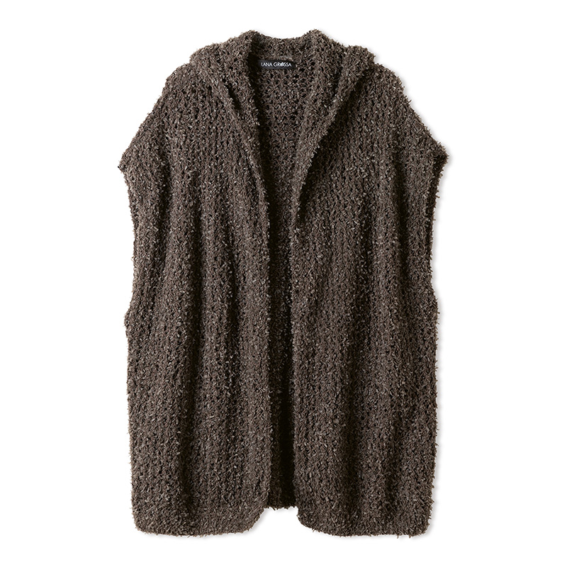Beschikbaar van maat 36 tot maat 50. Het vest op de foto is gebreid met kleur 4. Wil je een andere kleur? Klik dan op Lana Grossa Frizzante, kies jouw kleur en geef het kleurnummer door in het opmerkingen vak aan het eind van je bestelling.