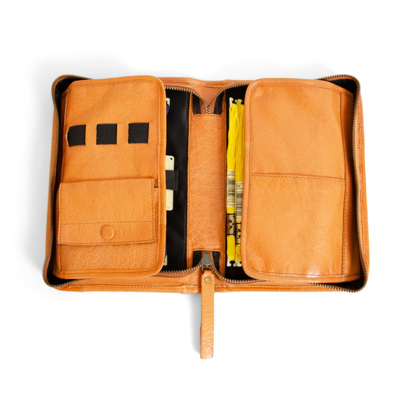 Muud etui Effi is een mooie leren etui met rits voor iedereen die van handwerken houdt. Geschikt voor verschillende doeleinden zoals het opbergen van haaknaalden, borduurgarens en kleine handwerkaccessoires.