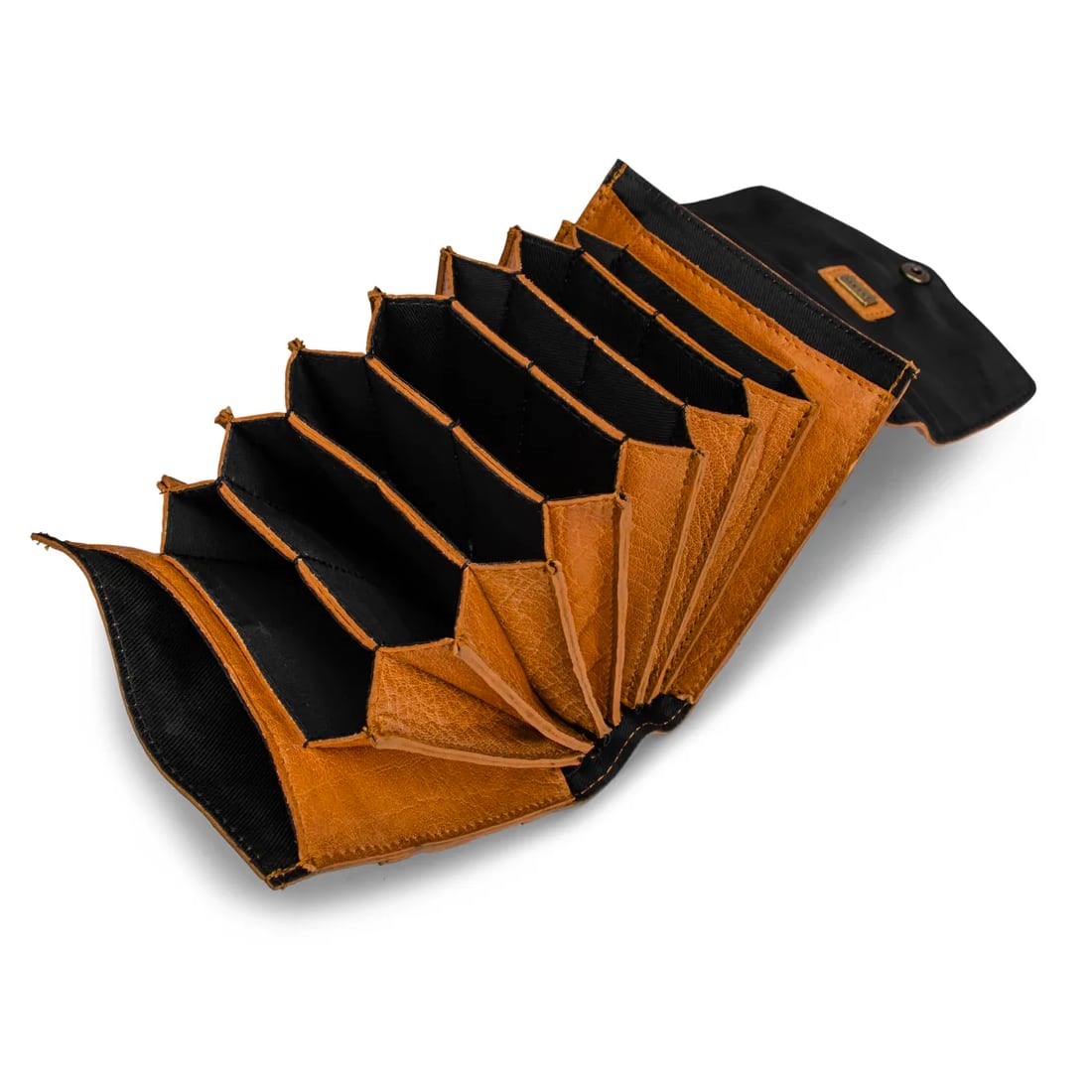 De etui is ontworpen met 9 vakken waardoor je voldoende ruimte hebt voor je benodigdheden. De naaldenetui sluit met een knoop waarbij je uit 2 maten kan kiezen, zodat je de knop kunt kiezen die bij je inhoud past.