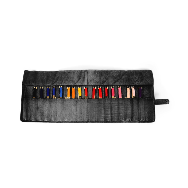 Muud roletui Elona houd je borduurgarens of haaknaalden (met smal handvat) perfect georganiseerd. Deze roletui is met de hand gemaakt van soepel leer die met de tijd alleen maar mooier zal worden.