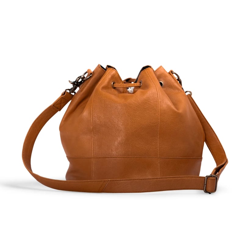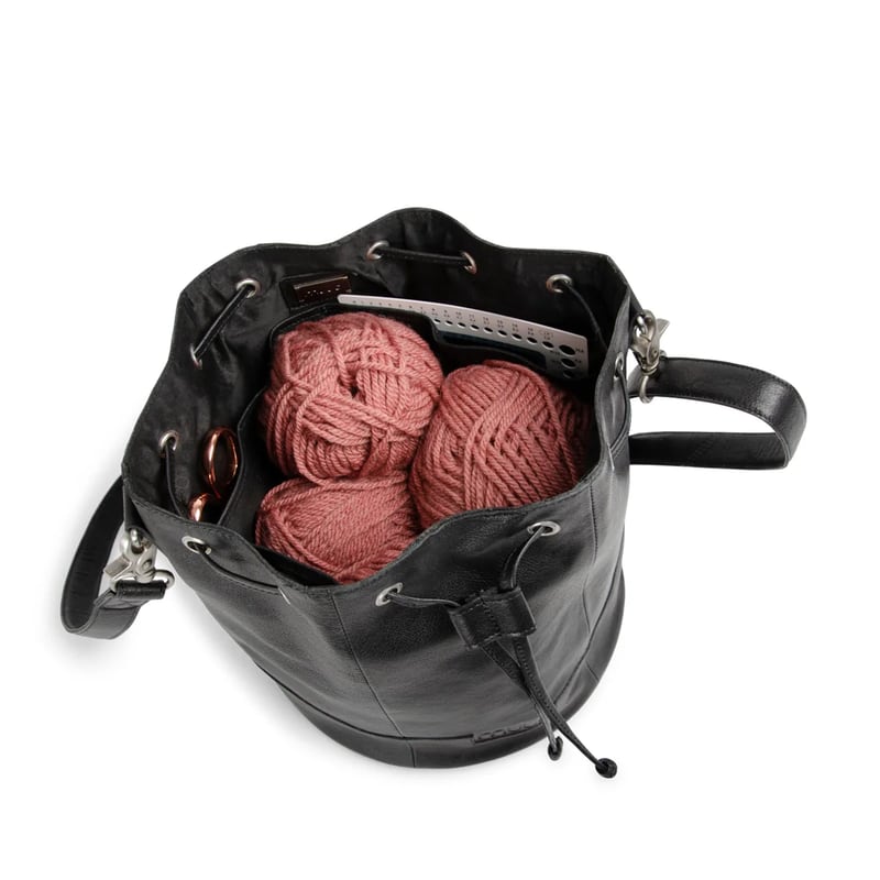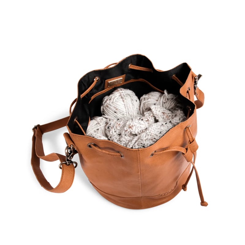 Donna is een prachtige trekkoordtas van muud. De tas is gemaakt van echt leer en is het perfecte accessoire voor iedereen die op zoek is naar een kleinere projecttas voor onderweg voor brei- en haakprojecten. Draag hem over je schouder of arm, of verstel de schouderriem en draag hem als crossbody tas.