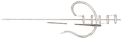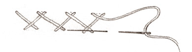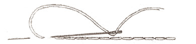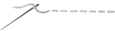 De rijgsteeg maak je door de naald op en neer door de stof te steken.