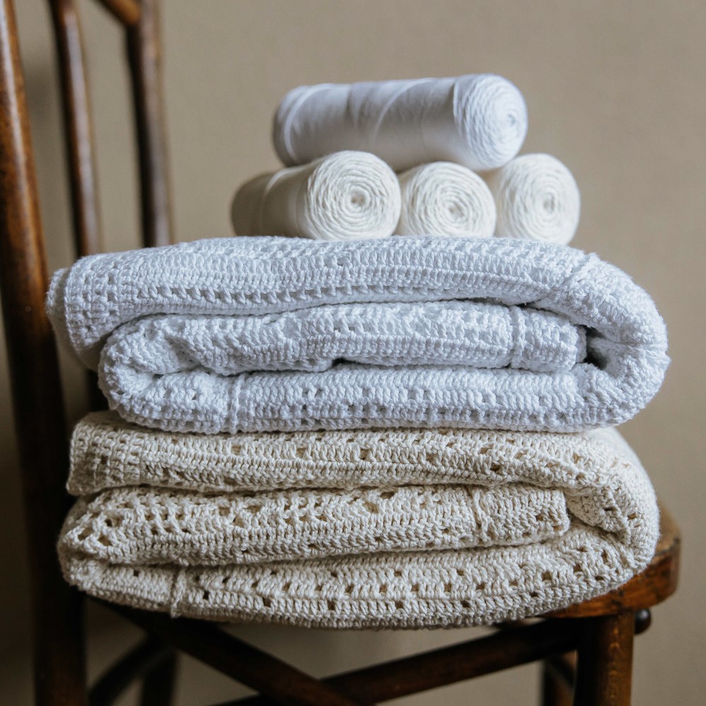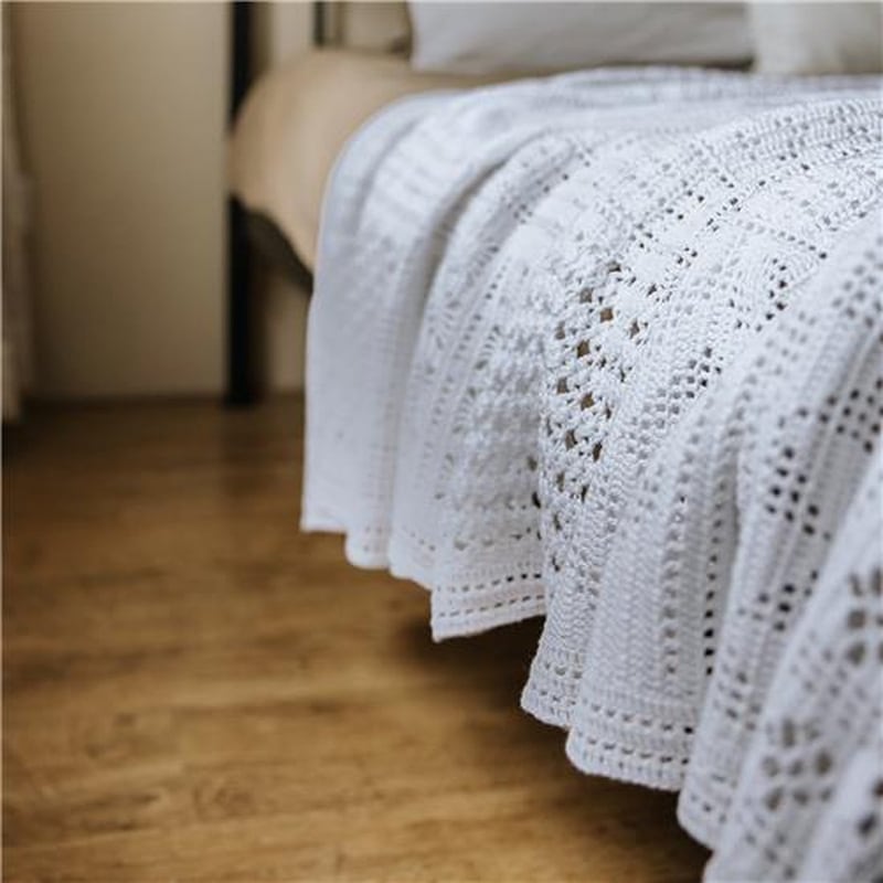 Voor deze sprei kiezen Jolanda en Naomi, net als bij de eerste Nostalgia CAL, voor de filethaaktechniek: open en dichte hokjes die samen een patroon vormen. Deze nostalgische deken bestaat uit banen die door middel van tussenbanen aan elkaar worden gehaakt. De sprei is gehaakt met Durable Breikatoen no. 8. en is ca. 155 x 205cm (bxl).