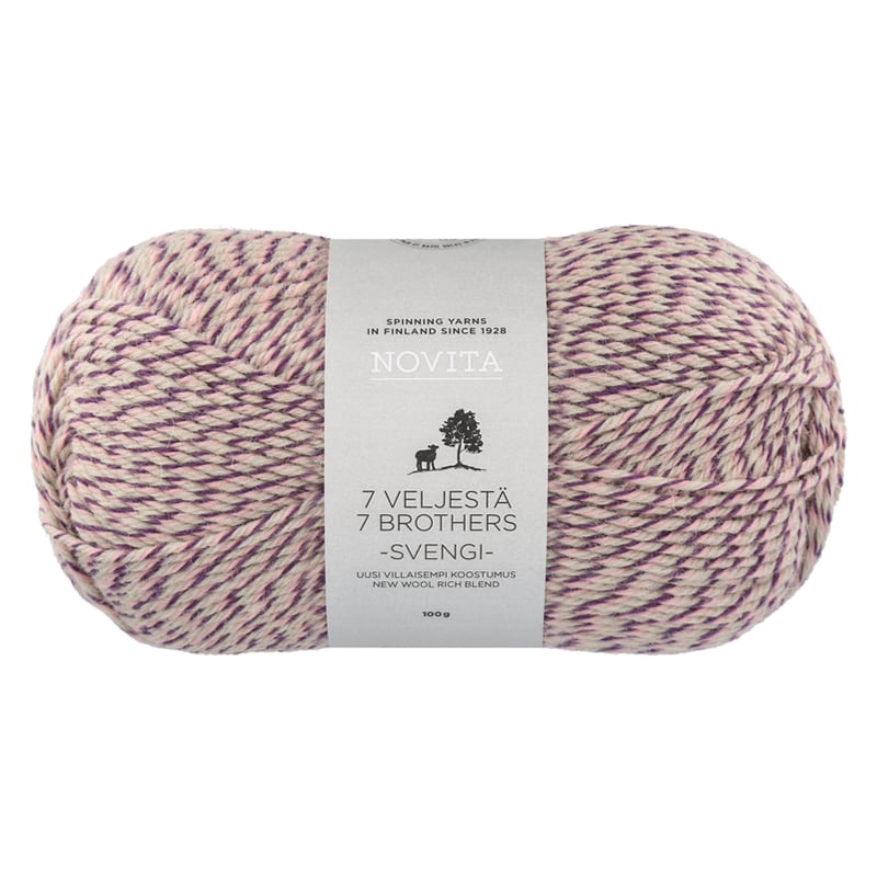 Novita 7 Veljestä Svengi wordt getwijnd met 4 verschillende kleuren draden. Daardoor is de sokkenwol prachtig gemêleerd, wat je breiwerk een levendige look geeft.