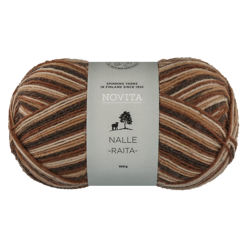Novita Nalle Raita is de kleurrijke variant van de Novita Nalle. Het is 4 draads getwijnd en maakt deel uit van de Classic Collection van Novita. Novita Nalle Raita is een sokken garen en is verkrijgbaar in een aantal verschillende multi kleuren.