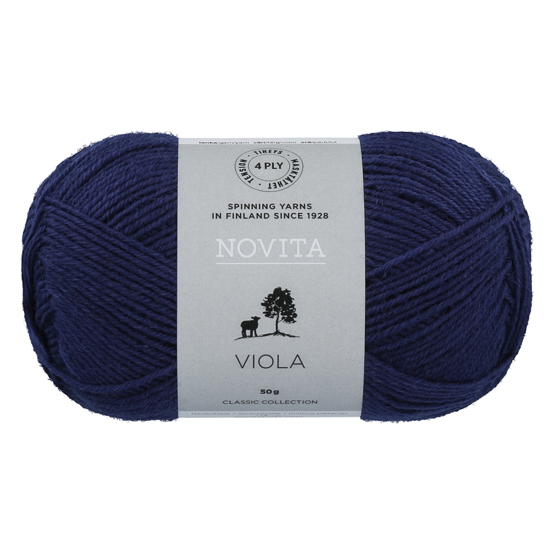 Novita Viola is een klassieke sokkenwol, 4 draads getwijnd en met een hoog percentage wol. Door de toevoeging van polyamide wordt het garen slijtvast en doe je lekker lang met je zelfgebreide sokken. Naast sokken kun je natuurlijk ook andere projecten breien of haken met dit effen garen. Zo breit men er in Scandinavische landen ook een mooi trui met ingebreid motief of een vest met kabelpatroon mee.