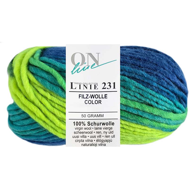 ONline Filz-Wolle is een dunne lontwol die is perfect voor het vervilten in de wasmachine. Brei of haak je ontwerp en vilt het door te wassen in de wasmachine. Zo maak je leuke accessoires als een tas, een wwonkleed of mand of heerlijk warme sloffen.