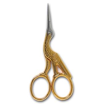 Borduurschaartje in de vorm van een ooievaar. Perfect voor het precies afknippen van borduurzijde en naaigaren.