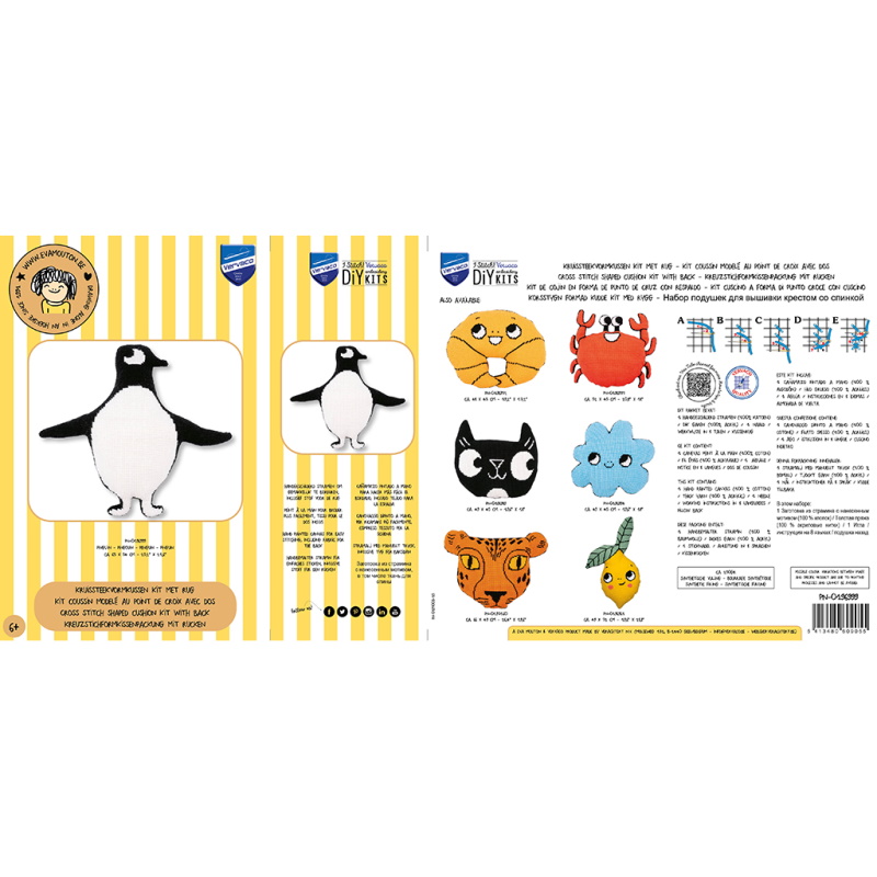 Vervaco heeft samen met de Belgische illustrator en cartoonist Eva Mouton super leuke borduurkussens ontworpen en daar ook letterlijk vorm aan gegeven. Deze leuke vorm borduurkussen 'Pinguïn' is een compleet Vervaco borduurpakket. Het patroon is voorgedrukt op stramien. Doordat dit pakket het benodigde garen, een wolnaald én een kussenrug mee levert, kun je direct beginnen. Je hoeft alleen nog maar de vulling erbij te bestellen. Maak de kinderkamer gezellig en combineer lekker met de andere vormborduurkussens uit deze serie zoals de Zwarte Kat, Cheeta, Krab, Wolkje, Citroen of Croissant.