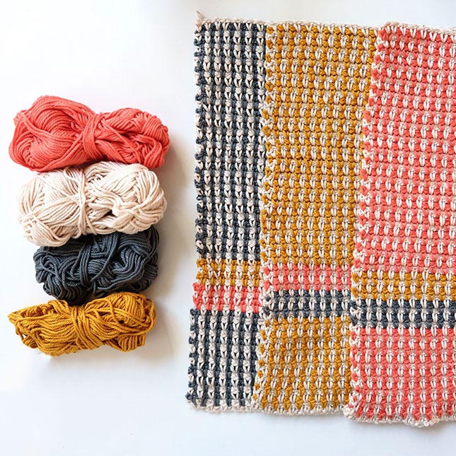 Zelf placemats haken, 3 stuks, met het Durable haakpakket. Je haakt de placemats met Durable Coral op haaknaald 3,5 mm. Je combineert de hoofdkleur met 3 verschillende kleuren en haakt zo een leuk setje placemats.