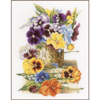 Pot met viooltjes Marjolein Bastin - LanArte kruissteek borduurpakket